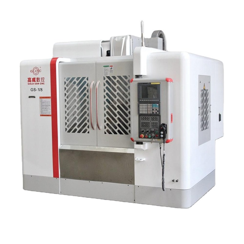 GS-V8 is CNC controlled machine center equipped with automatic tool changers, tool magazines, coolant systems, and enclosures. It is generally classified as vertical machining centers (VMCs).